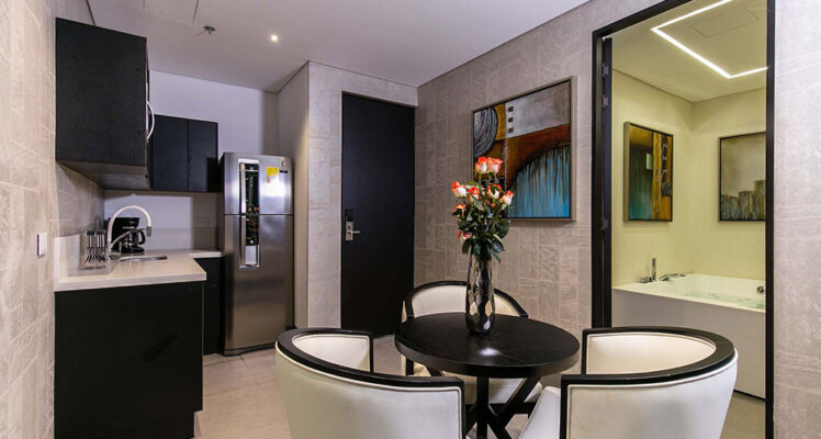 Sumérgete en la elegancia de la Excelsior Suite 604, una joya de 2 dormitorios, con lujosas camas queen-size, esta suite es perfecta para alojar hasta 4 huéspedes cómodamente. Disfruta de un toque de indulgencia con un jacuzzi privado en cada habitación, mientras contemplas las vistas impresionantes de la ciudad desde tu ventana.