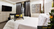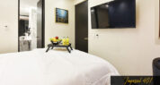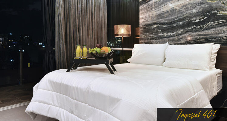 Bienvenido a la Imperial Suite 401, una experiencia de lujo incomparable, esta espaciosa suite de 3 dormitorios es ideal para grupos de hasta 6 personas, ofreciendo un ambiente de elegancia y confort en cada rincón. Descansa plácidamente en nuestras lujosas camas queen-size y sumérgete en el jacuzzi privado para un momento de relajación total. Además, disfruta de las impresionantes vistas de la ciudad desde el balcón privado.